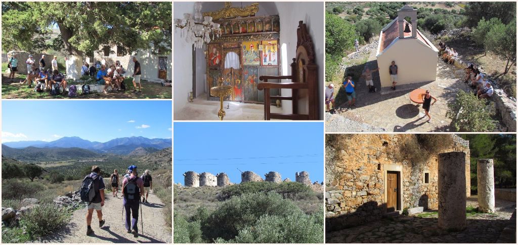 This was the first organised walk we took part in and pretty busy with around 30 people signing up. Despite the group size, it was a good walk; starting on a wide track the path then turned into a guess-the-route through the scrubby bushes that dotted the ground. A church, the remains of ancient sites and some water cisterns provided things to look at, as well as the lovely views. A Minoan track took us back to the start and back in the marina it was beers and nibbles at the Two Brothers bar – the traditional end to a Tony Cross organised walk.