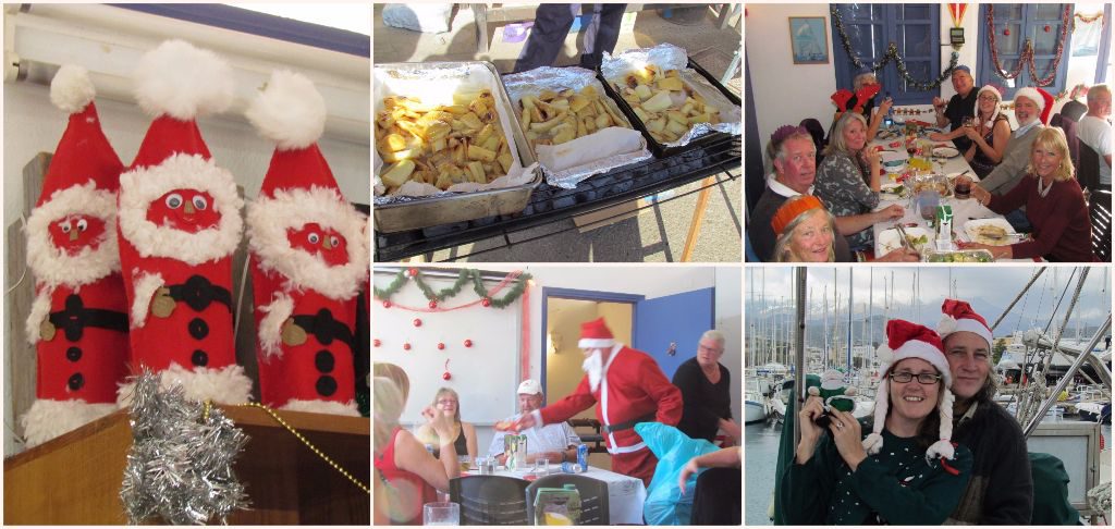 For Christmas around 30 of the winter live-aboards gathered for a Christmas dinner in the yacht club. A marvellous feast of turkey, roast veg and stuffing was followed by Christmas pud. Whilst the food settled Santa came to visit and the After Eight game was played before dancing on into the wee hours.