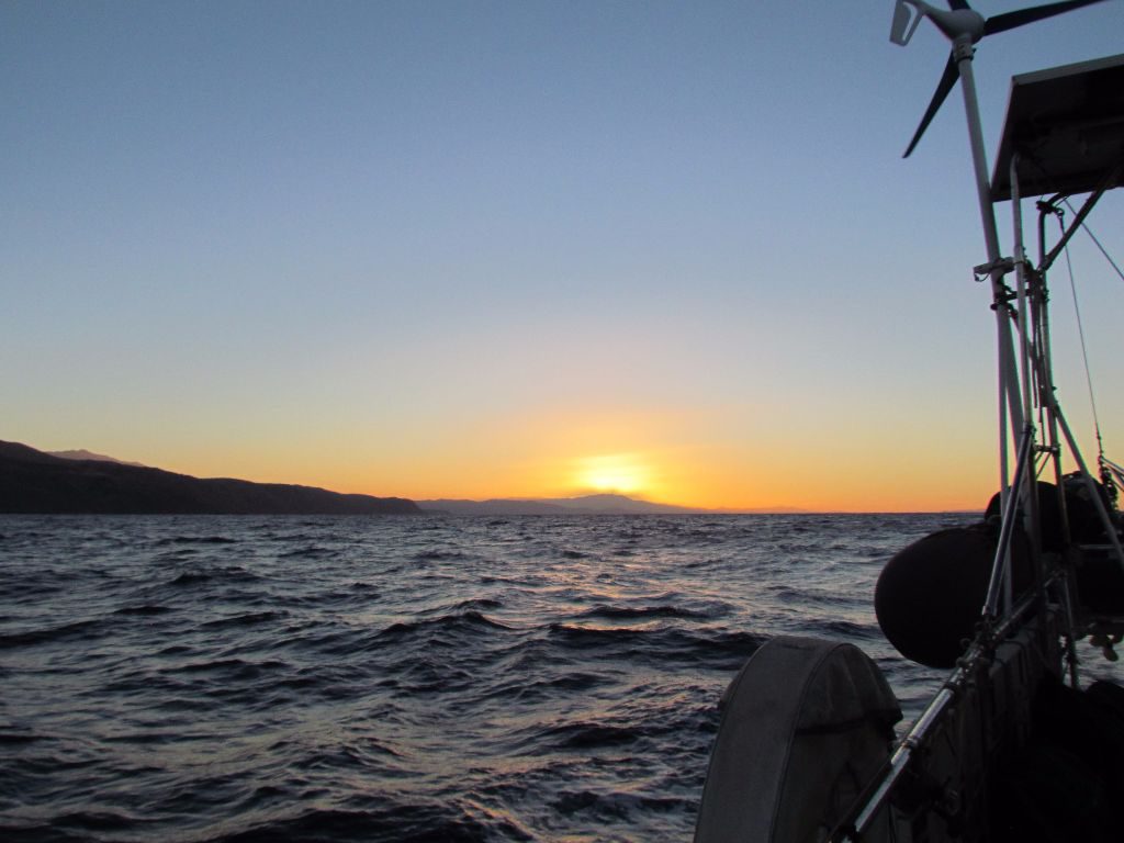 We’d considered breaking the journey into two with an overnight stop at Dia Island but we were making such good progress we continued on. However our arrival at Agios Nikolaos would be after dark; the sun had dipped below the horizon as we rounded the headland north of Spinalonga. We were very grateful that Stephen and Anne from Wandering Dragon had kindly stepped in to be our helpers and had spotted out a space for us on the outer wall. The marina knew we were coming but a misspelling of our name had the marinero on duty that night saying he couldn’t find our details!