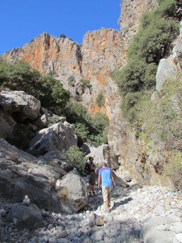 Another gorge walk, this time round on the south side of the island. In the tiny village of Pefki we parked and walked on down past fertile allotments. The path descended down into the gorge; steep brown walls rising up either side. A short walk at just over 3 miles but a very pretty and fun gorge to walk through.