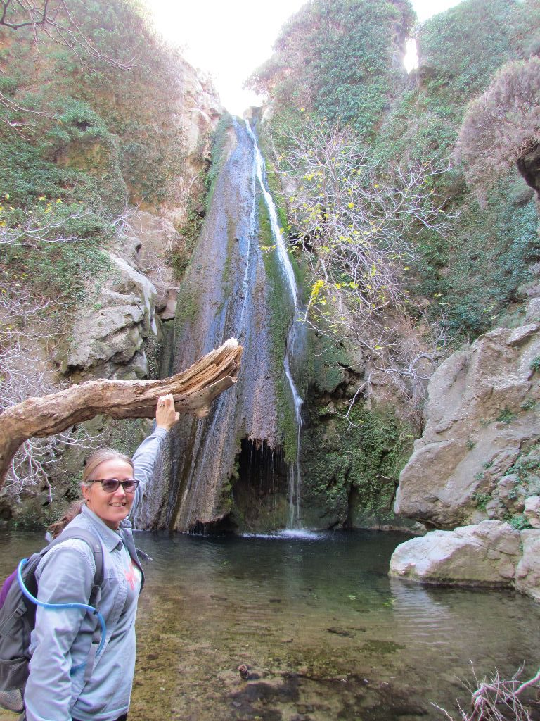 A 40 minute drive towards Sitea brought us to a track signposted to the Rictis Gorge. The cars drove on down the track to reduce some of the distance, until we reached an old bridge and could drive no further. The path passed under the bridge between orange and lemon groves, the river running beside it. Water was running and it was lovely and cool under the shelter of the trees.
