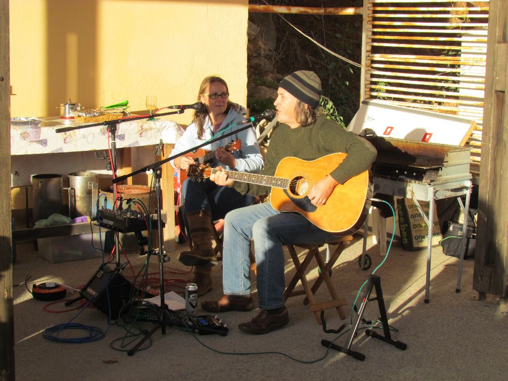 Colin’s birthday fell on a Sunday this year so we used the weekly BBQ as a chance for a party. Colin played a few tunes and I made a rocky road cake to share with everyone.