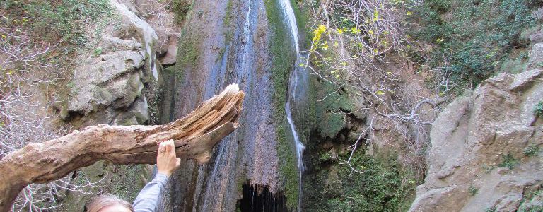 A 40 minute drive towards Sitea brought us to a track signposted to the Rictis Gorge. The cars drove on down the track to reduce some of the distance, until we reached an old bridge and could drive no further. The path passed under the bridge between orange and lemon groves, the river running beside it. Water was running and it was lovely and cool under the shelter of the trees.