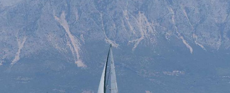 The trip back to Nidri was much quicker than the outward leg. By mid afternoon the wind was up again, gusting F6 from the north. With a furled genny and a much cleaner bum, Emerald romped back in an hour. No relaxing for us though; the next day we were on the Iris pontoon scrubbing Emerald’s decks in preparation for painting the white bits of the deck and coach roof.