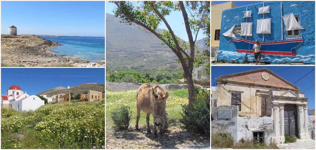 Kasos is the southernmost island in the Aegean and doesn’t receive as many visitors as it’s neighbouring islands. It can be a wild and windy place but we were blessed with light winds and sunshine for our time there. Over the next few days we explored the port village of Fry, Bouka, the former pirate harbour and the villages clustered on the hillsides. There was plenty of people about, the cafes were busy and everyone was so friendly and happy as preparations were made for the summer season. As we kalimera’ed our way along the roads even the cars and bikes that passed us waved or nodded and a donkey eeyored a welcome and ambled over for a scratch between the ears. The port police were very friendly when they came to visit and offered to move some of the boats in the new harbour if we wanted to go there (water and electricity is available there).