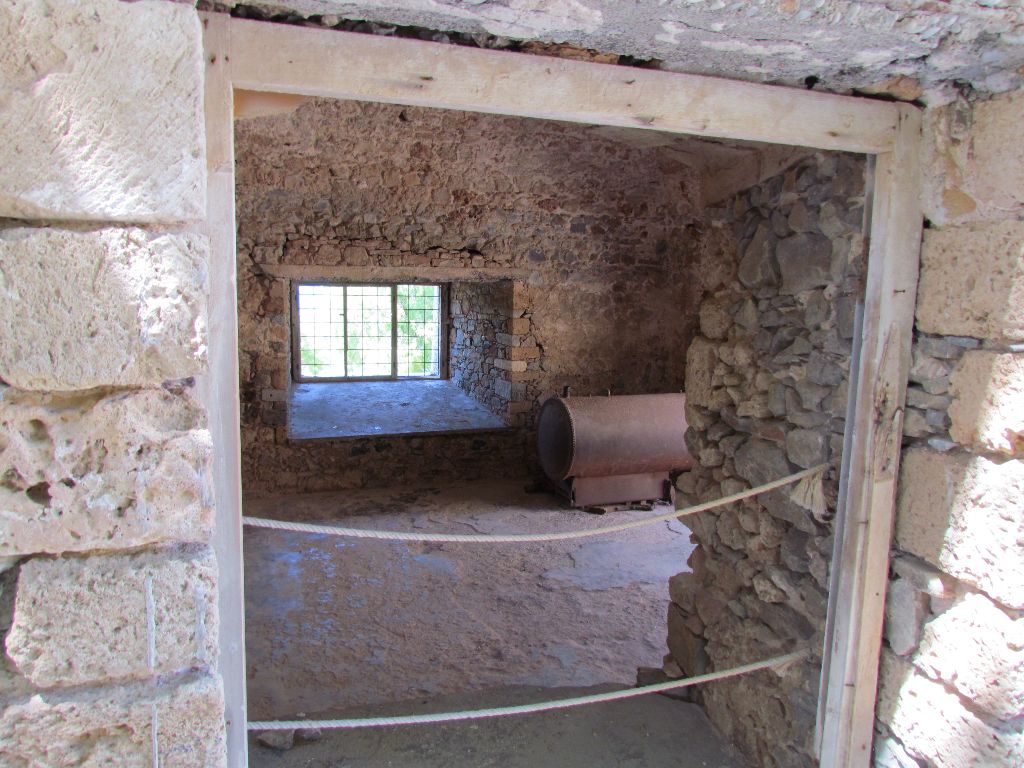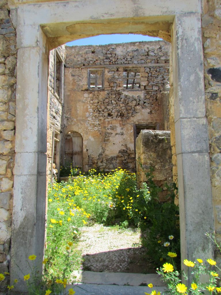 We walked anticlockwise around, dinging the bell at St. George’s chapel on the way past to commemorate his saint day. Yellow and white giant daisys covered every available bit of land with splashes of red poppy. On the west side we arrived at the ruined houses; those from the Ottoman village and the later buildings built for the leper colony. Most of the houses had lost their roofs, a few beams hanging precariously in places. Walls had tumbled, doors hung crooked and across all of it the wild flowers ran rampant. They added brightness to a place with a sad history; standing by the imposing entrance gate I tried to imagine the despair the lepers would have felt on arriving here, uprooted from their homes and families and herded into the huge disinfection room within a former guard house.