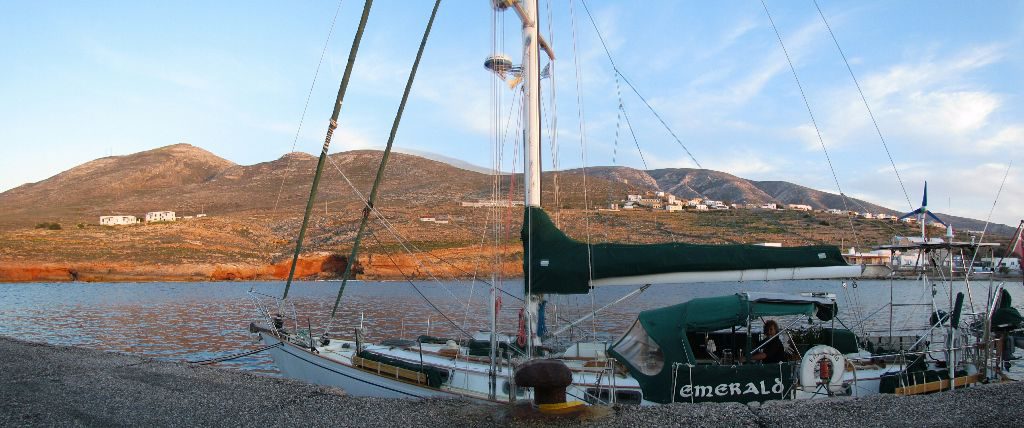 Tied up alongside old harbour wall in Emborio in position 35 25.074’N 26 55.946’E