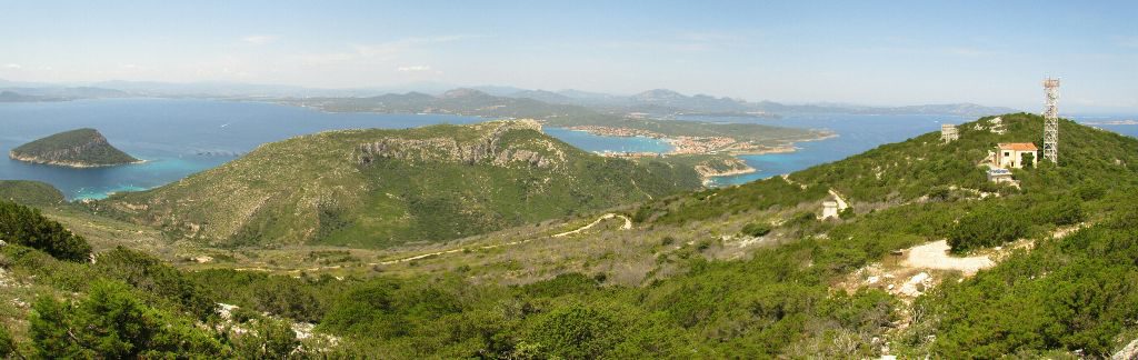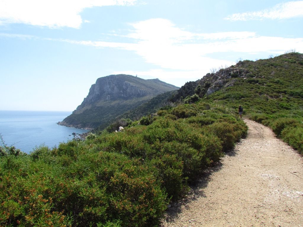 The holding was good and we felt happy to leave Emerald to enjoy the trails on Capo Figari which loomed over us. The first part of the track was wide and well defined, gently sloping upwards through shady oak trees. We then branched off onto a narrower and altogether steeper track that would give us a short cut to the top. After a spot of scrambling and playing spot the cairn, we were up on the main dirt track and the going became much easier.