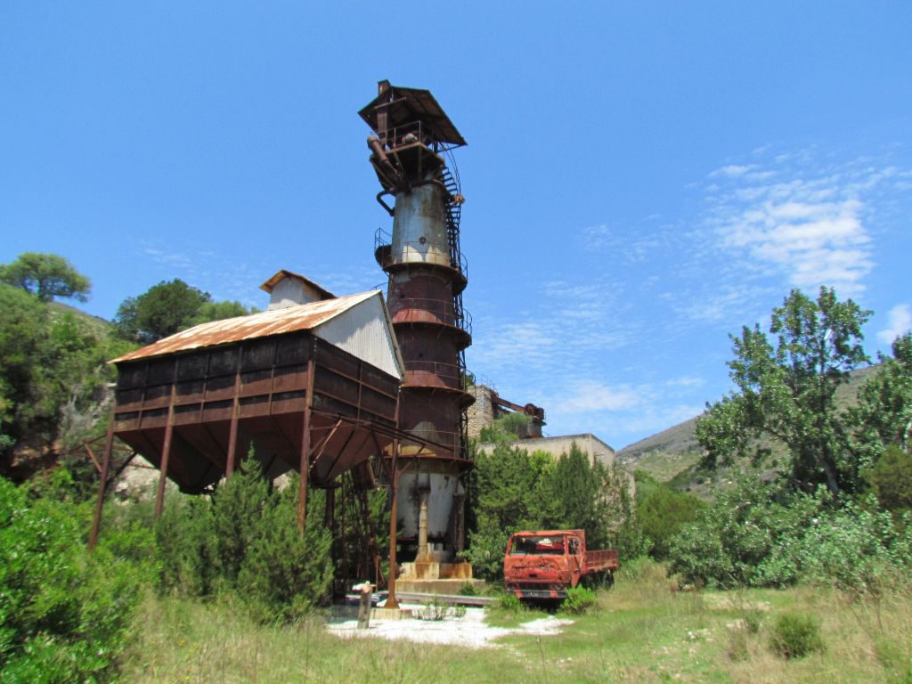 Back to sea level and past the small but pretty Cala Morersca with a few boats anchored off. Behind the beach, through a gate left slightly ajar, are the remains of a metal furnace, the result of an experiment to bake lime which never came to fruition. The metal cylinder looks like a helter skelter or perhaps a rusting space ship, with a cool looking old truck left abandoned below (I have a thing for old vehicles).