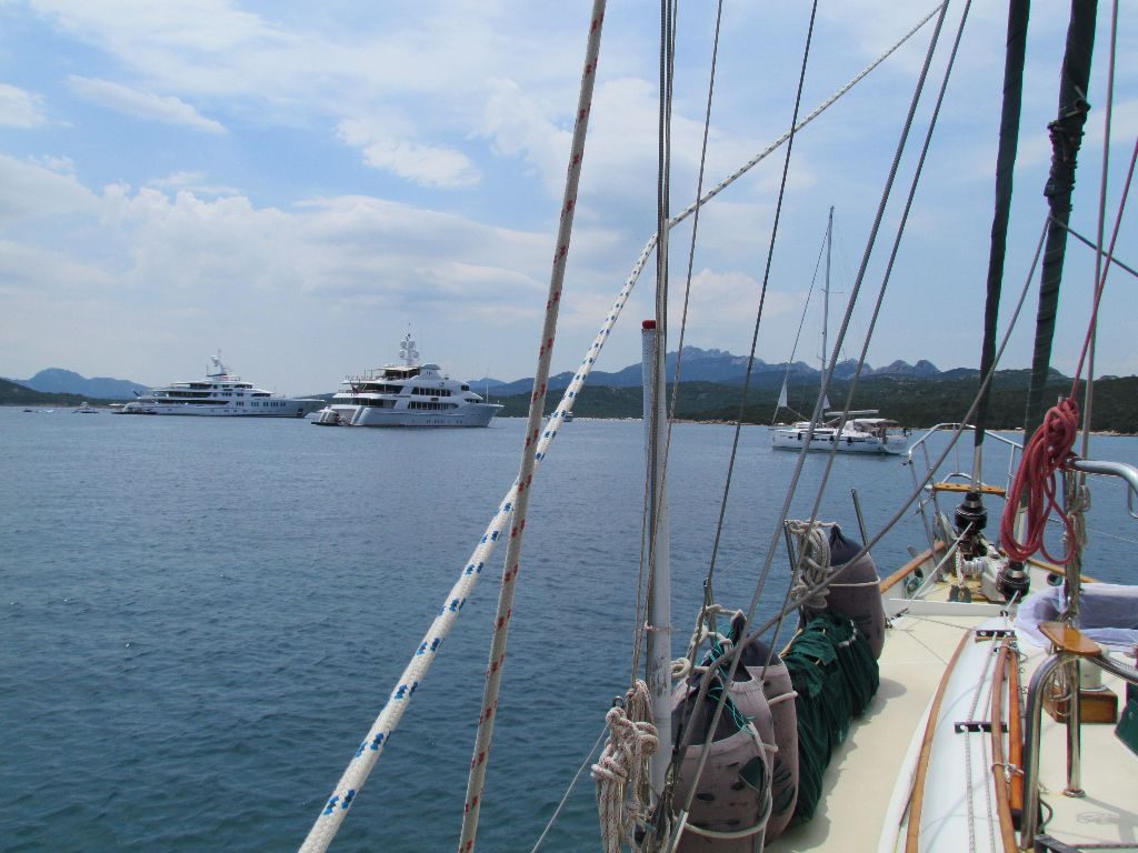 Cala Volpe is very much superyacht territory with massive mooring buoys laid out for them all across the bay. We picked a spot outside the mooring field, just outside the entrance to the Cala. We thought there was more space to swing there rather than inside the narrow looking cove. It wasn’t the best of choices; we were then annoyed throughout the rest of the day by RIBs zipping by in and out with their wealthy guests.