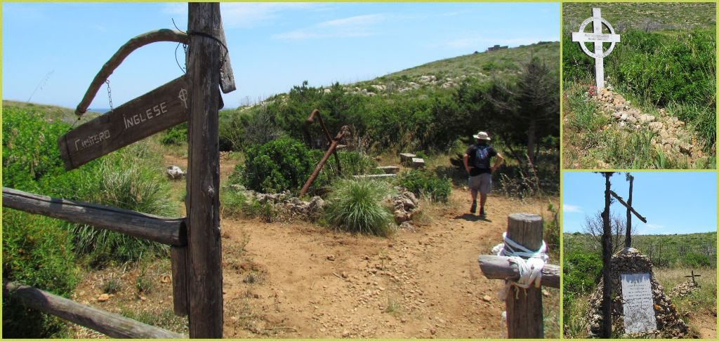 The way down was much easier than the up, following the dirt road which took some very long winds to get us back to sea level from 344m up. Just before we reached the bottom we detoured off to visit the English Cemetery. In a peaceful, shady glade are the graves of 13 sailors who sadly lost their lives at sea. Most of the graves are unmarked, the stand out one having a Celtic cross and marked with the name of an English seaman who succumbed to malaria at the tender age of 18. It turns out he’s the only Englishman there, the other graves belonging to Italians whose names have now been lost to history, but the location has taken on the name from George Bradshaw’s grave.
