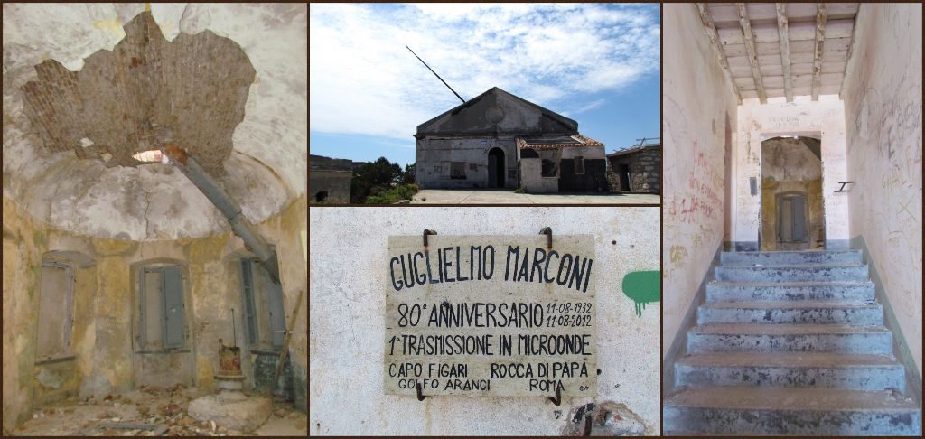 At the top, on past a modern day transmission mast stands the Semoforo di Capo Figari – a now decaying building that deserves a little more love given the role it played in radio transmission history. Originally built in 1890 as a means of providing light signals to guide passing ships, it continued in this role for 40 years. Then in 1930 Guiglielmo Marconi chose the site as a location to undertake experiments in the sending and receiving of microwave signals. These were successful and led two years later to the sending of the first shortwave radio transmission, also from this location. Unfortunately it’s place in radio history ultimately led to the it’s demise; roll on a few more years and ships were being fitted out with the new radios, there was no longer a need for signal lights and so the building fell into disrepair.