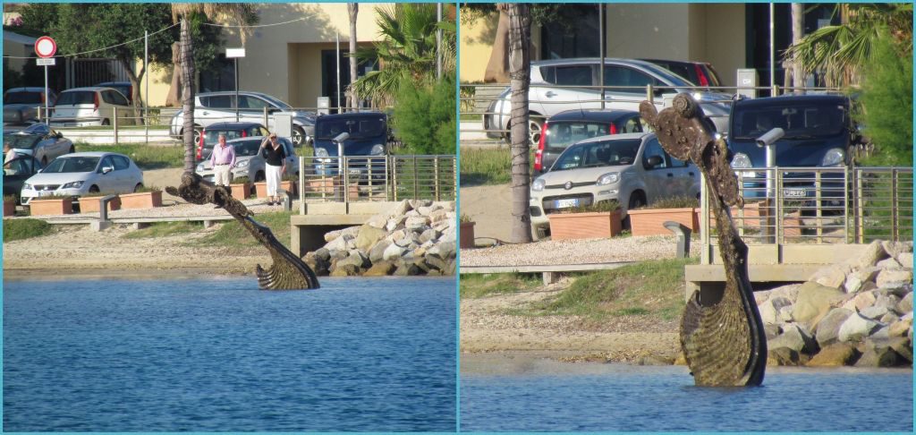 Anchored in a spot off of the Lega Navale pontoon we had a short trip ashore and when we asked someone on the pontoon if we could tie up, they directed us to a metal ladder along the boardwalk. It was a sturdy ladder, unlike some of the rickety ladders we’ve climbed in the past. The town had a relaxed and welcoming vibe and a very friendly butcher with whom I had my first all in Italian conversation!