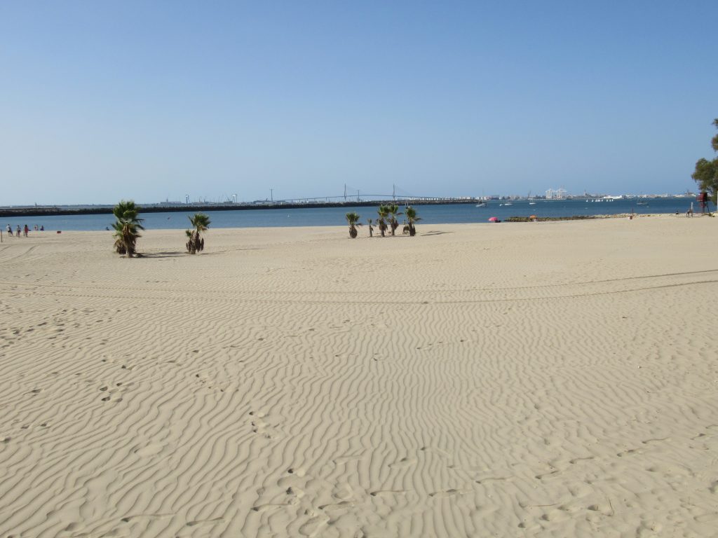 The anchorage sits between the Rio Guadalete breakwater and Puerto Sherry marina. The available space was larger than expected and headed by a lovely looking expanse of golden sand. Holding was excellent and the breakwater wall provides protection from easterly winds.