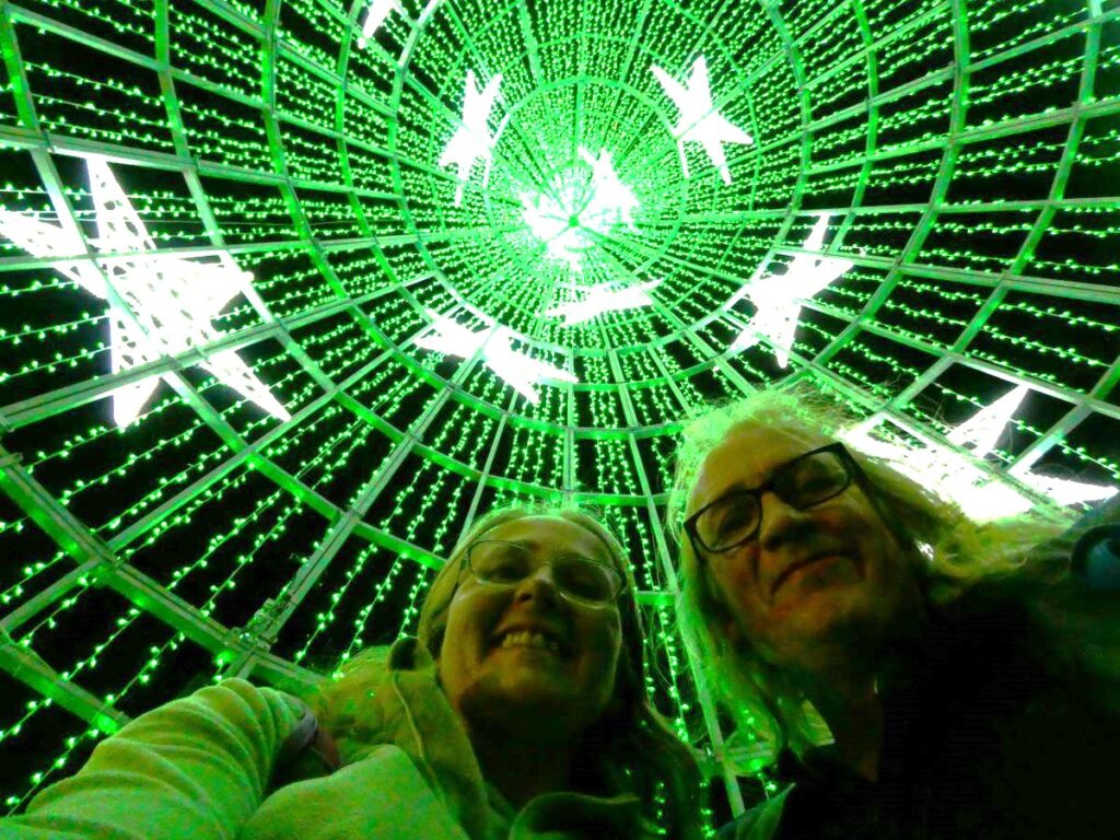 I’d read that Funchal has a fantastic Christmas light display and I wasn’t disappointed. In fact I was in twinkly, fairy light heaven as we wandered through the streets. We started up by the casino, then strolled down the hill past trees wrapped in multi-coloured lights. Heading down to the harbour front we came across a long wave structure that pulsed to give the illusion of movement. Behind it stood a huge Christmas tree and beyond that a fair.