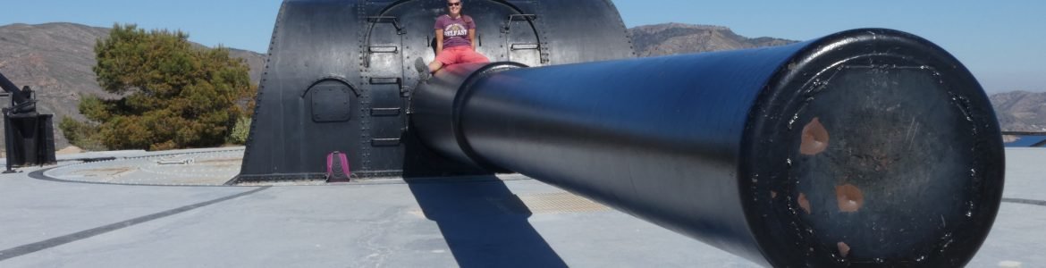 Perched around the headland are a number of gun emplacements and attached batteries. Built in the 1920s, the fortifications provided a means of protecting Cartagena, whose sheltered waters harboured the Spanish navy. They were constructed in a modernist style. So, rather than looking functional, they could easily pass as a fairground fantasy park. A number of British Vikers guns are still in place: three 152.5mm anti-shipping guns and two enormous 381mm guns. Their long snouts point ominously out to sea and were once capable of hitting a target up to 35km away.