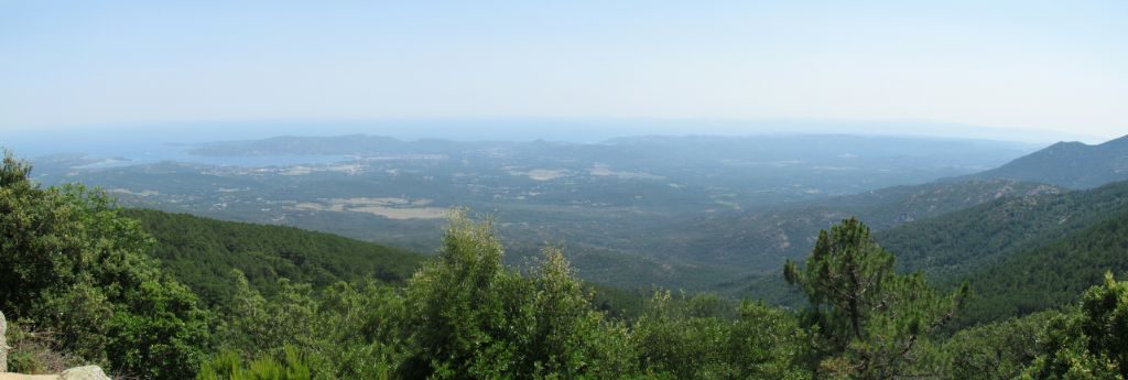 Thursday took us back up the high hills behind Porto Vecchio to L’Ospedale, a village clinging to the hillside, 900m up, with wide reaching views down across the bay. We set off along a well marked and wide track through a forest, streams burbling away, pleasantly warm rather than hot. The walk took us up to a rocky outcrop called the Punta di Vacca Morta (we didn’t see any dead cows) at 1300m where we could look south down to Sardinia; Isola Tavolara clearly visible in the far distance. We could see Emerald as a tiny dot down to the east and boats making their way along the west coast of Corsica.