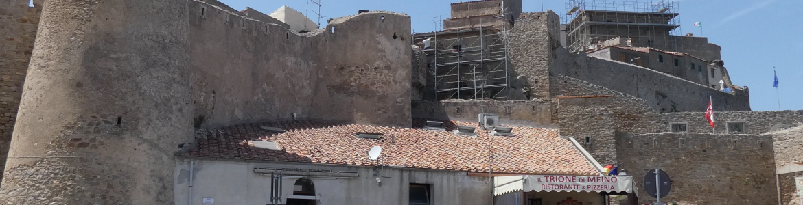From the anchorage we had surveyed our destination – Giglio Castello, the fortified town and castle that overlooks the bay. It had looked a long way up. The steepness of the slope drove us to search out alternatives to walking up and our sleep starved bodies rejoiced at the news there was a bus. The journey was spectacular as we wound our way up the switchback road, where random sculptures and topiary decorated the sides of each tight curve.