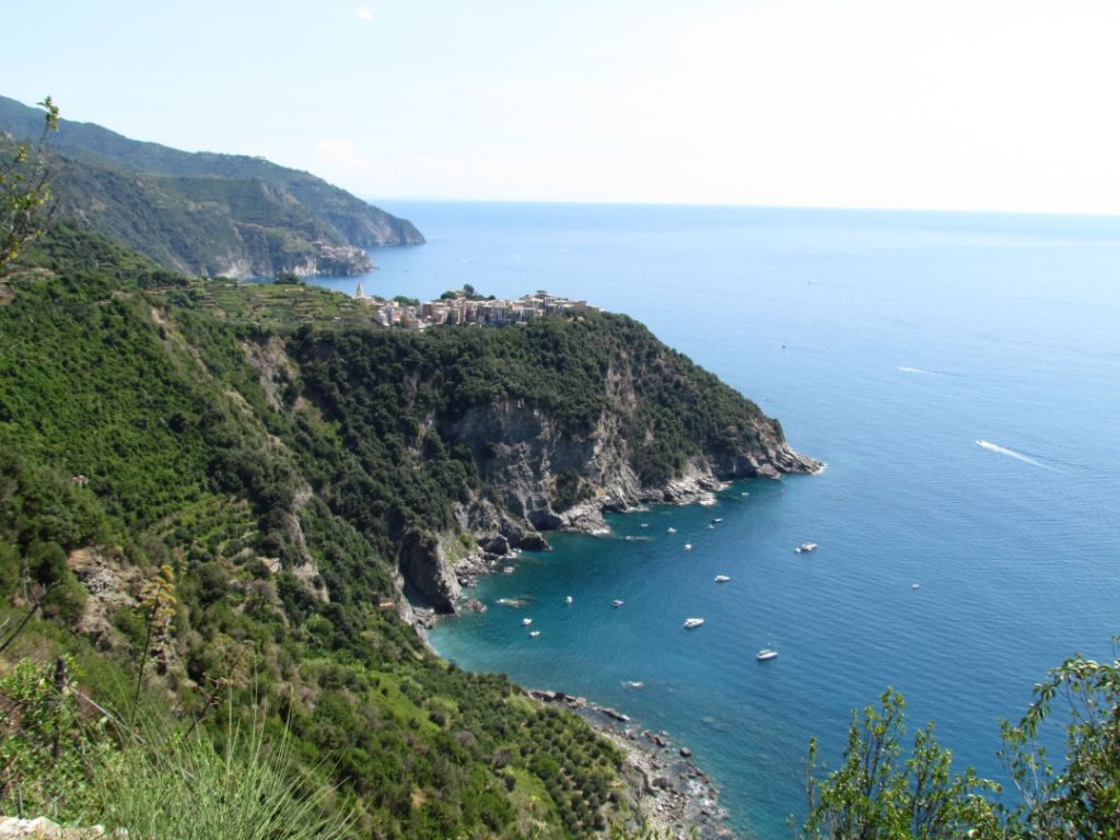 Tickets finally in hand, we squeezed onto the next available train and in 5 minutes we were at the first village of Riomaggiore. It was very pretty, with it’s de rigueur pastel colours. We had a wander, got stuck in a throng and ate some more fried calamari. Our lost hour in the queue of doom meant we couldn’t linger as long as we liked so we got back on the train, leapfrogged Manarola and got off at Corniglia. The coastal path that links the villages was badly damaged in floods a few years ago so several sections are closed; the route between Corniglia and Vernazza was one section that was open. The park website provides information on the trails along with a traffic light scheme to indicate how busy the path is. Midday to 2pm was red for crazy busy and we were there just after 1pm. What were we letting ourselves in for?