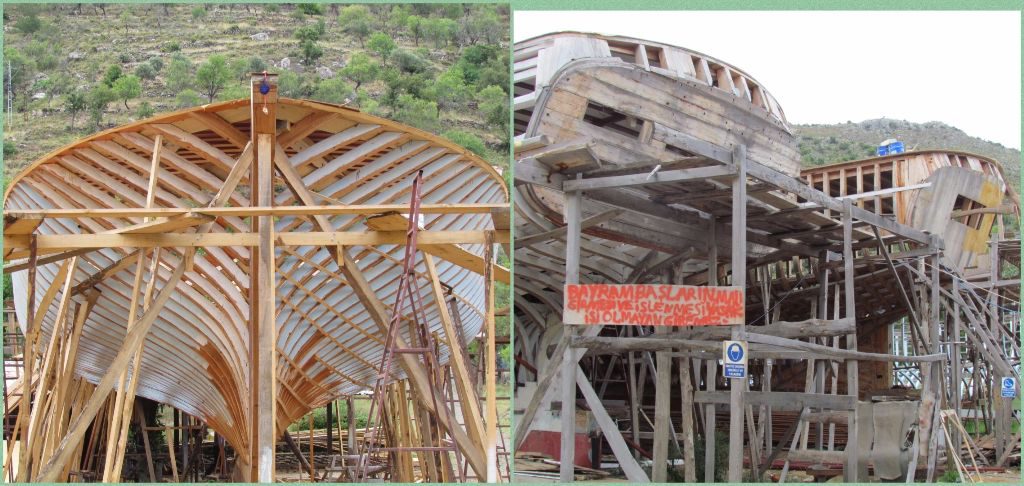Another day, another walk, this one heading out of town on the road in the direction of Marmaris. Here we found gullets under construction, at least 10 of them, and all huge, workshops set up in fields alongside the road with rickety sheds containing tools and machines. Sheeps, goats and chickens completed the picture.