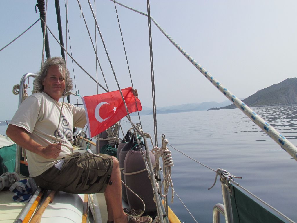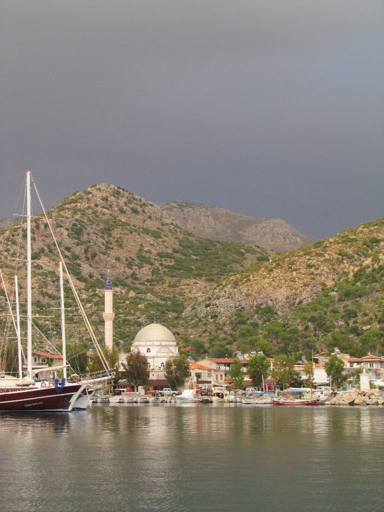 We sat out the day of storms and a day of strong winds before we managed to break away. To pass the time we practised our instruments, did some sketching and began to learn some more Turkish words. Unfortunately we hadn’t learnt the word for milk (sut) when we went to buy some, but there were plenty of plastic bottles in the fridge containing what looked like milk so we bought one of them. We now know that buttermilk (ayran) is nice on breakfast but doesn’t go so well in our morning cuppa! It looks like a lot of buttermilk is consumed in Turkey given the numbers of bottles of ayran on sale.