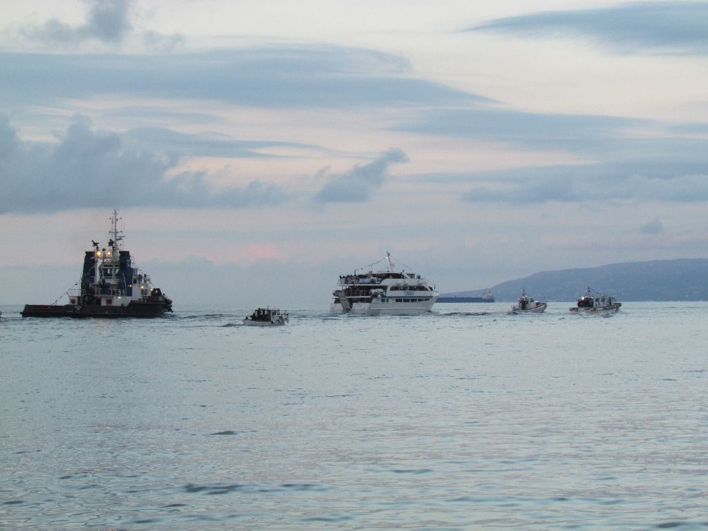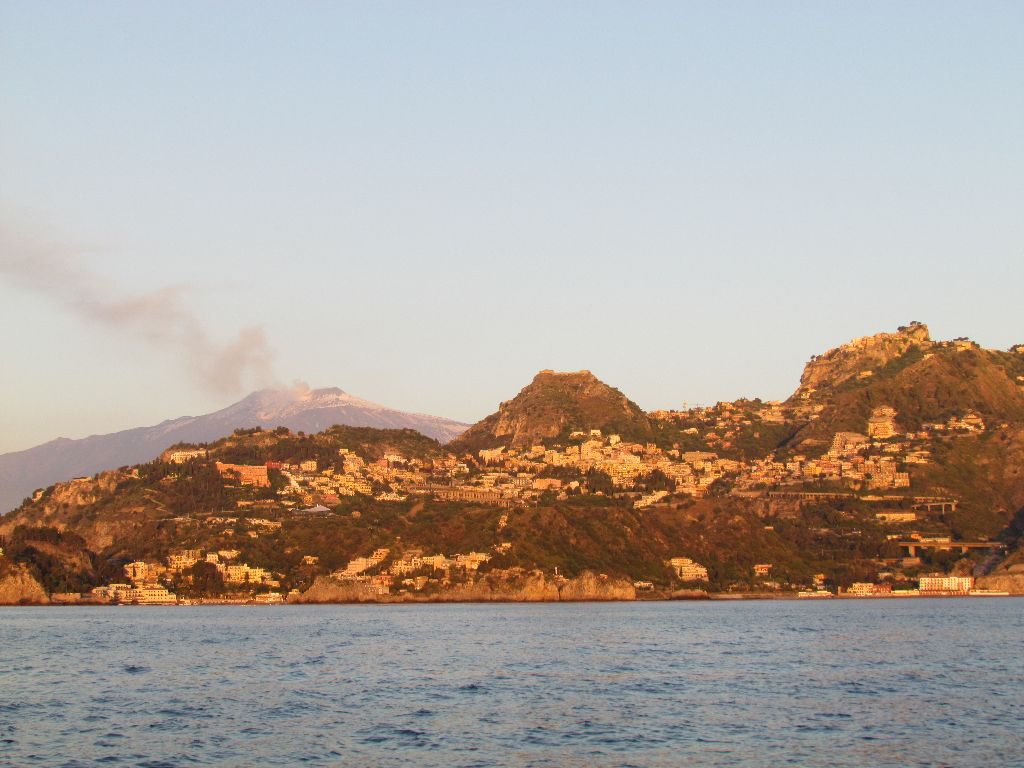 All started well on out trip up the Messina Strait. Somebody accidentally set their alarm clock an hour earlier than planned, but that was no bad thing as it turned out as the extra hour meant we got a slow sail in. Plus we got to see the sunrise making a golden glow on Etna before the clouds gathered around her peak.