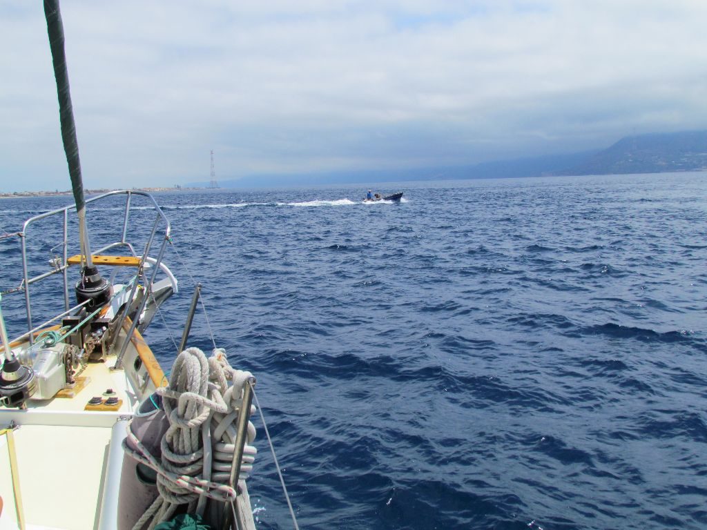 As we rounded Cape Rascolmo we got some pleasure when we were able to get sails up and turn the engine off for two hours of peace and a slow sail towards Milazzo.