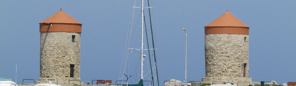 We were very pleased to find out there were berths available in Rhodes Mandraki harbour with laid lines and all for the very reasonable price of €12 a night, including water and electric. We really hate Med mooring, on the handful of occasions we’ve done it, another boat has either crossed our chain and pulled up our anchor or caused some other problem leaving us uncomfortable leaving the boat unattended. Other boats we know have had serious damage caused whilst Med moored. Even in Mandraki another boat chose to anchor moor and their anchor caught on the underwater chain that runs along the harbour and to which the laid lines are fastened, and they had to wait for (and pay) a diver to free them.