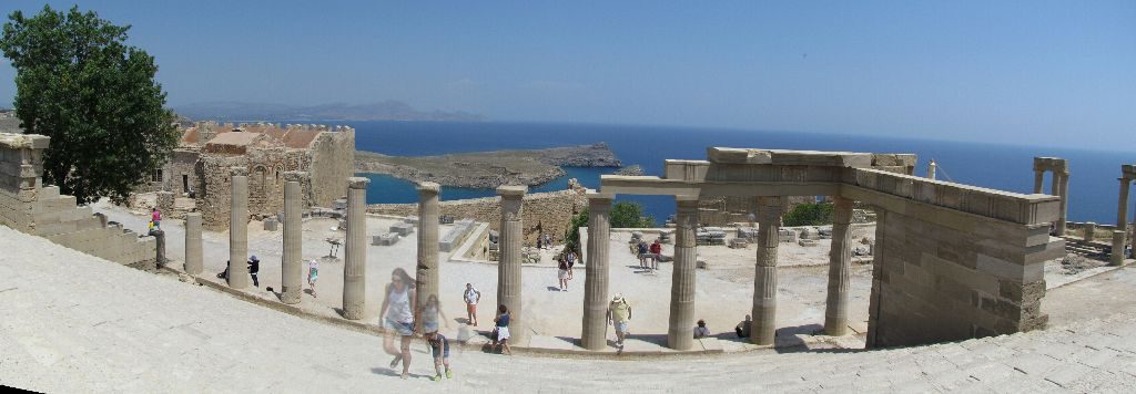As the sun got higher we took the steps up to the acropolis. Here the remains of many layers of history can be seen, the oldest dating back to a Doric temple from 300BC and on to the 14th century fortifications built by the Knights of St. John. Columns, monumental staircases, a reconstructed temple and castle walls all perch together on the rocky outcrop with fantastic views.