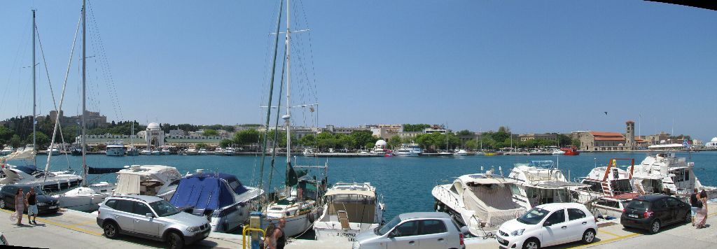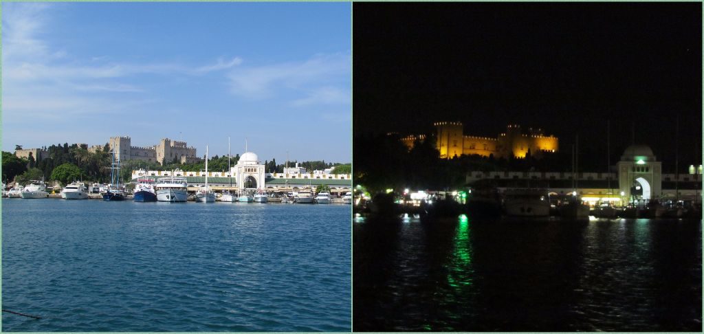 So to be able to safely and cheaply tie up the boat whilst enjoying some history and contrast to our weeks in the wild was an opportunity we gladly took. We made our booking through Nicos at Navigo Agency who charged a €20 arrangement fee, still a very good price when spread over the days we stayed. Following in the path of countless ancient vessels, we passed under where the Colossus of Rhodes once stood over the entrance to Mandraki port. Emerald was directed to a snug berth between two power boats with a great view across to the Grand Master’s Palace.