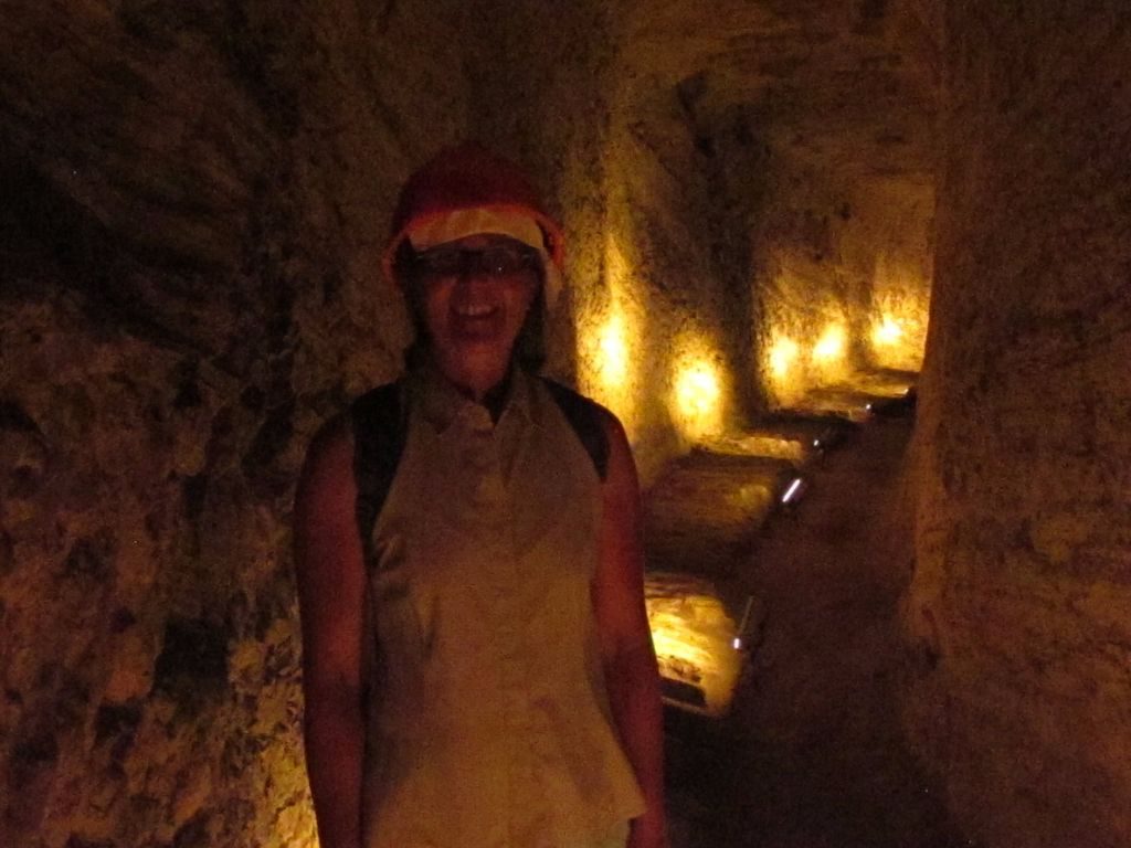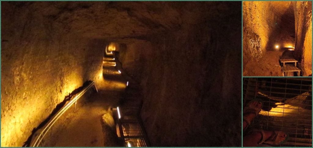 Wearing hardhats, first we passed though a narrow entrance with a pointed roof, built to help prevent invaders getting in as locals would hide in the tunnel when the island was under attack. The tunnel then widened out to nearly 1.8m wide and 1.8m tall. Being 164cm + hardhat tall meant I didn’t have to duck down too much. I knew being a shorty would come in useful sometime. A metal grid had been installed over the section where the water pipe ran so we could see it below us.