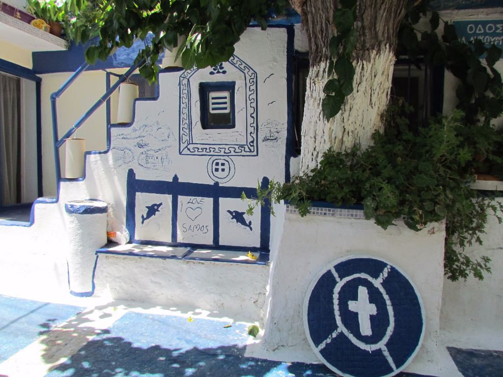 We liked Pythagorion. Yachts and tavernas lined the pretty quayside. Although we didn’t get time to go to Lidl we restocked with all we needed in the local butchers, fishmonger, fruit and veg shop and a couple of mini-markets.