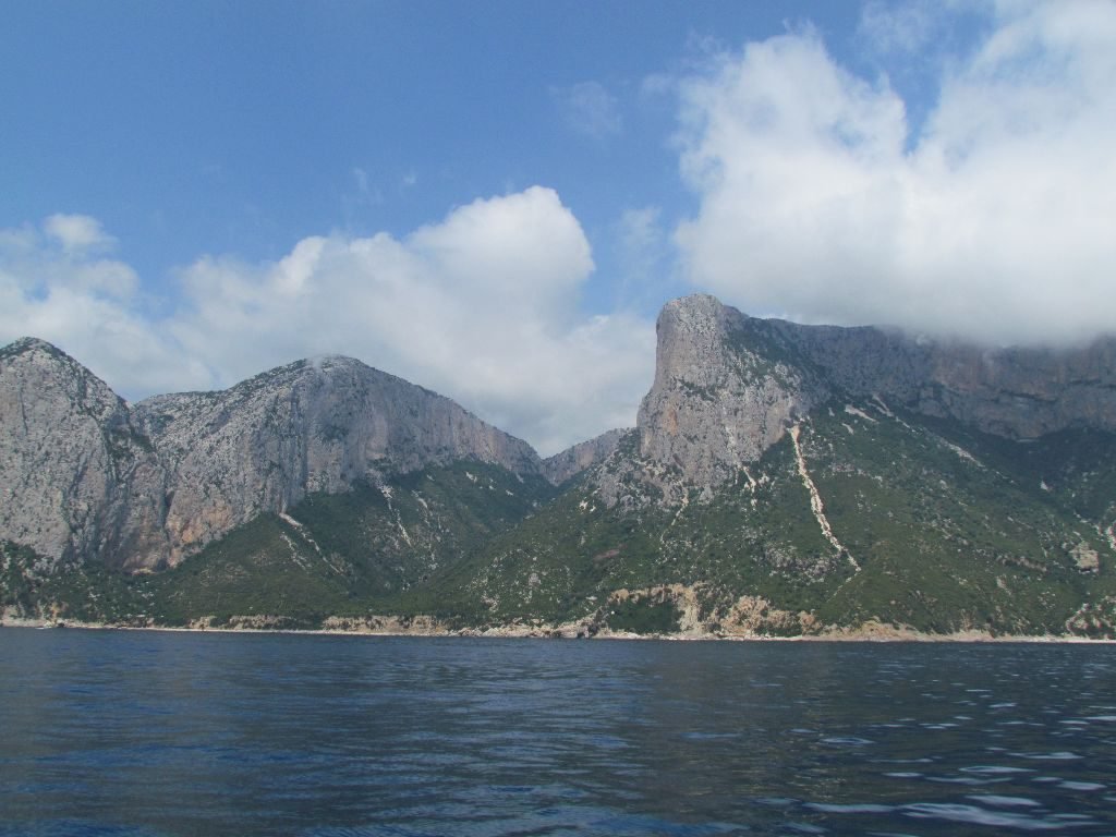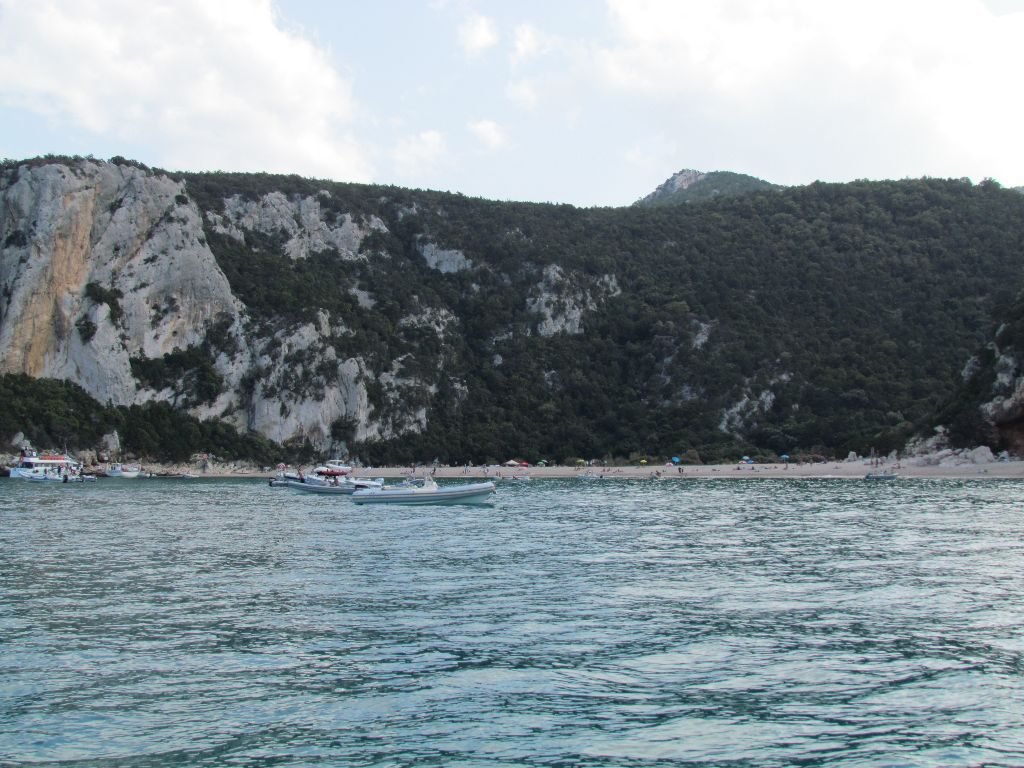 The scenery up the coast is stunning, with high, dramatic cliffs falling into the blue sea. Caves and sandy coves dotted the grey and caramel coloured walls with wispy clouds brushing the tops. As we turned into the Gulf of Orosei the boat traffic increased dramatically with masses of RIBs whizzing around as they visited the different calas. It was hard to tell what was swell and what was boat chop.