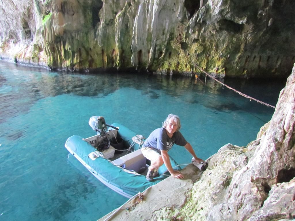 The caves have tours at 11am and 3pm at this time of year and we had arrived in time for the 3pm tour. We left Emerald at anchor, bouncing around in the boat wakes off Cala Luna and dinghied the 1nm to the caves. We were pleased to find there was a quay inside the cave with places to tie up the dinghy. It turned out we were early as we had to wait for the trip boats arriving from Cala Gonone which didn’t depart from there until 3pm.