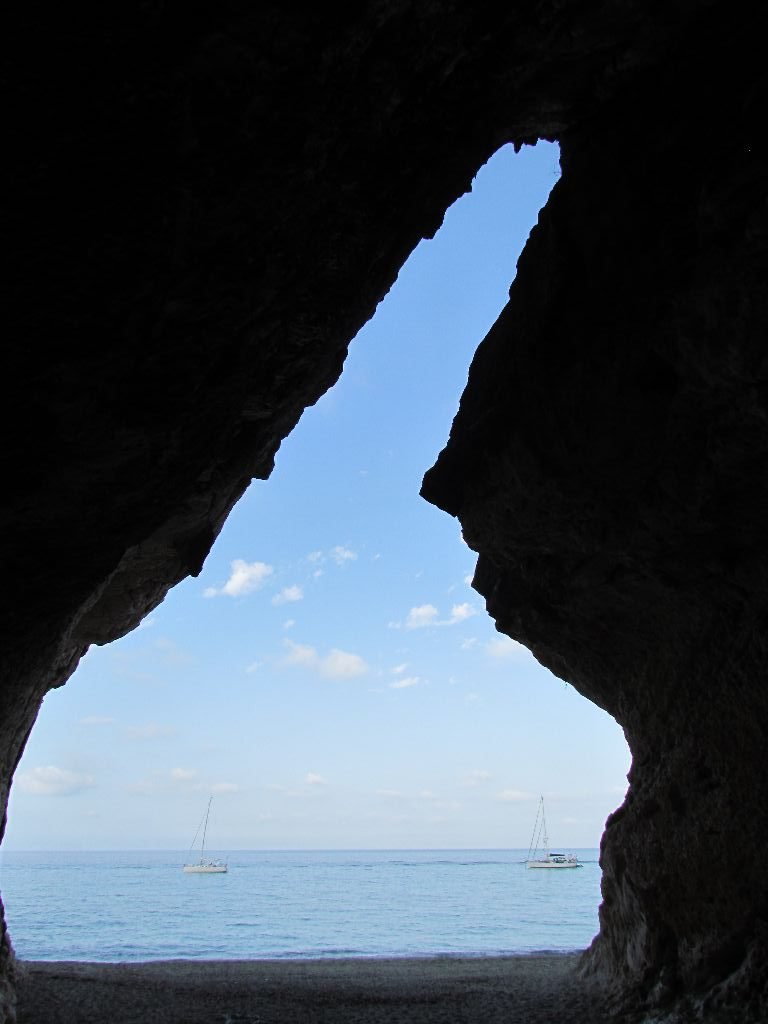 Our decision to stay two nights was partly driven by our desire to anchor off Cala Luna to visit the Bue Marino Caves for which we needed to give the swell time to drop down. As we motored off Friday morning there was still a low swell but we reckoned it would be manageable and with no wind in the forecast, might drop off further.