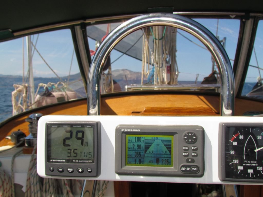 On Wednesday morning, our second attempt at leaving was successful with light winds greeting us when we woke at 6am. They were still from the NE though with the forecast showing them going west from 7am so we hung around for another hour to see what happened and amazingly, by 7am Emerald was pointing her bows to the west in the light breeze that had set up. In our experience, it’s not often that happens with weather forecasts to that accuracy!