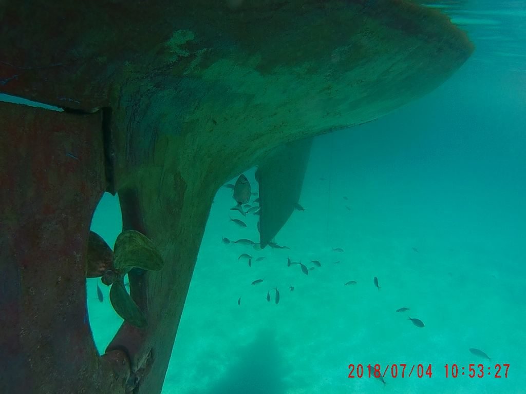 The day had a chilled vibe to it, so we stopped off for lunch and a swim in the beautiful Ile Cavallo. We had to squeeze in to the narrow cala with other boats far closer than we’d usually be happy with. But with no wind there was minimal dragging risk. Plus the water was so clear we could easily see each boat’s anchor. The water was lovely and crystal clear. The fish life was the most abundant of what we’d seen in a long time. The fish were having a good munch on Emerald’s bottom slime, so there was no rush to leave.