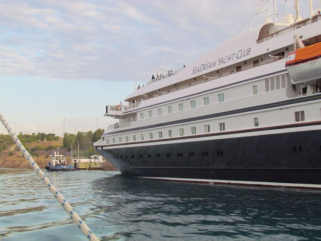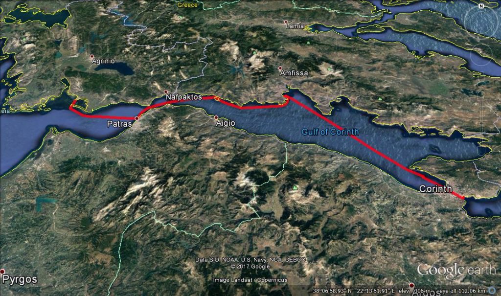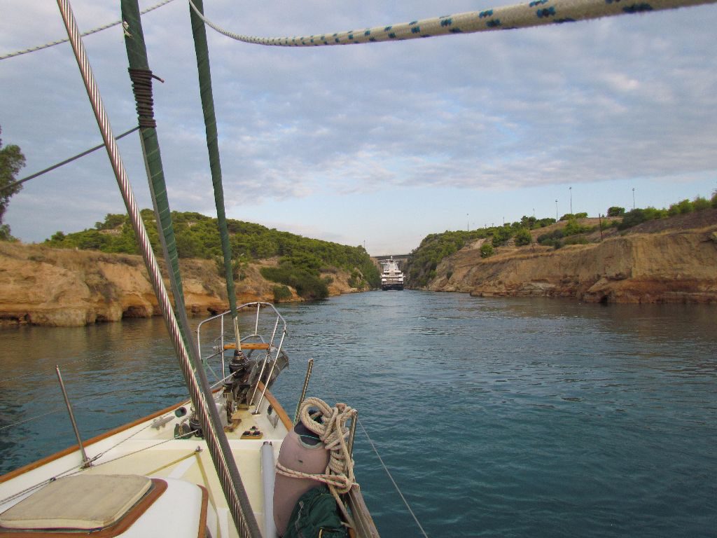 It never really achieved the traffic flow that was anticipated – beset by landslides, limited to vessels less than 17m beam with winds that funnel between the steep walls and the strong tidal currents, it is now mainly used by small cruise ships and yachts. And oh do we pay for it! 225 euros makes it one very expensive passage. Being someone who likes numbers and statistics I also wanted to test if the short cut theory holds up so I calculated two non-stop routes from Cape Sounion in the Aegean to Akra Oxia in the Ionian. Going via the canal the distance is 150nm, and surprisingly going around the Peloponnese is only a further 15nm.