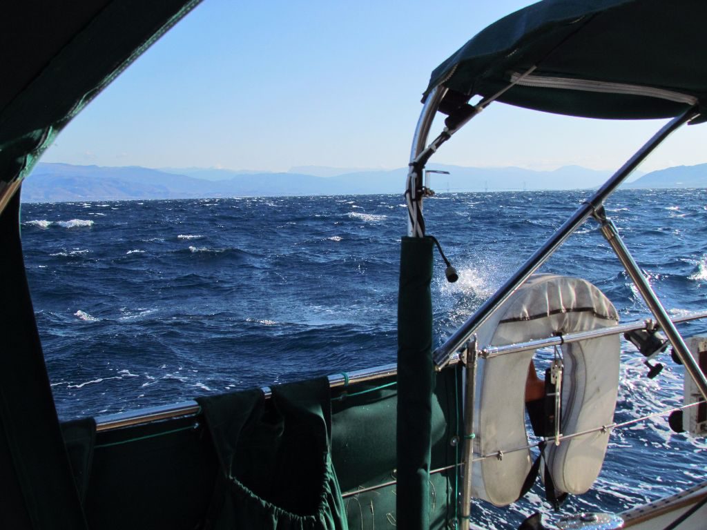 We blasted across to Messolonghi under a scrap of genoa. What was supposed to be a F4 turned out to be a F6 gusting F7. Does the wind ever not blow strong down this gulf?