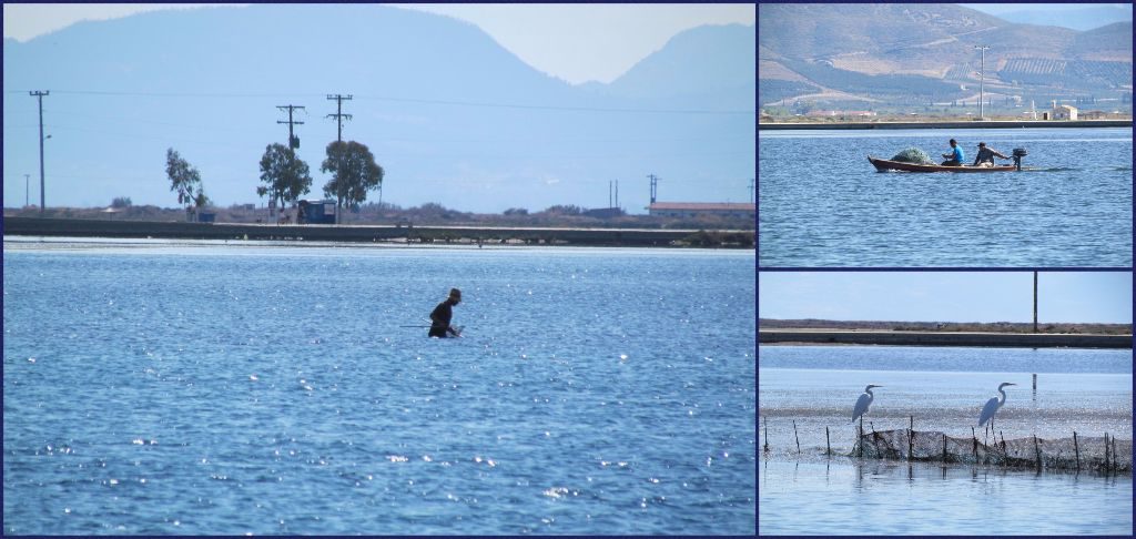 It was an exhilarating romp across and as we approached the entrance to Messolonghi the wind kindly died away. However, looking back there were still white horses galloping down the gulf so perhaps we were in some kind of wind shadow. The channel was flat calm with white herons balanced on their stilt legs waiting for some prey to come into view.
