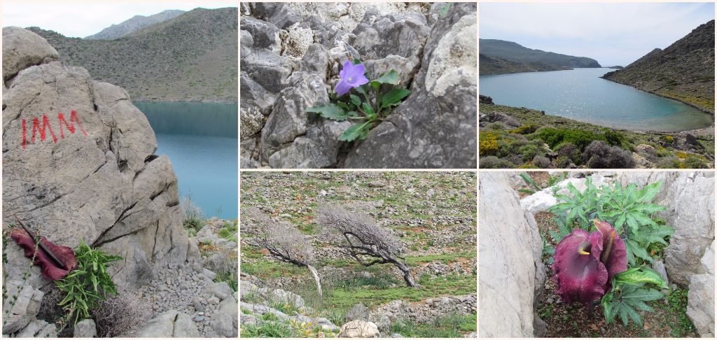 The hill sides had a much more barren and rocky theme to them than Kasos. No blooms of wildflowers, mostly spiky plants with gorse providing splashes of yellow. A few red poppies, most other flowers were sparse and tiny, but it is impressive where life manages to grow, such as the lilac flower in the top middle picture above. I did spot some more Dragon Arums, these ones definitely had a stink to them.
