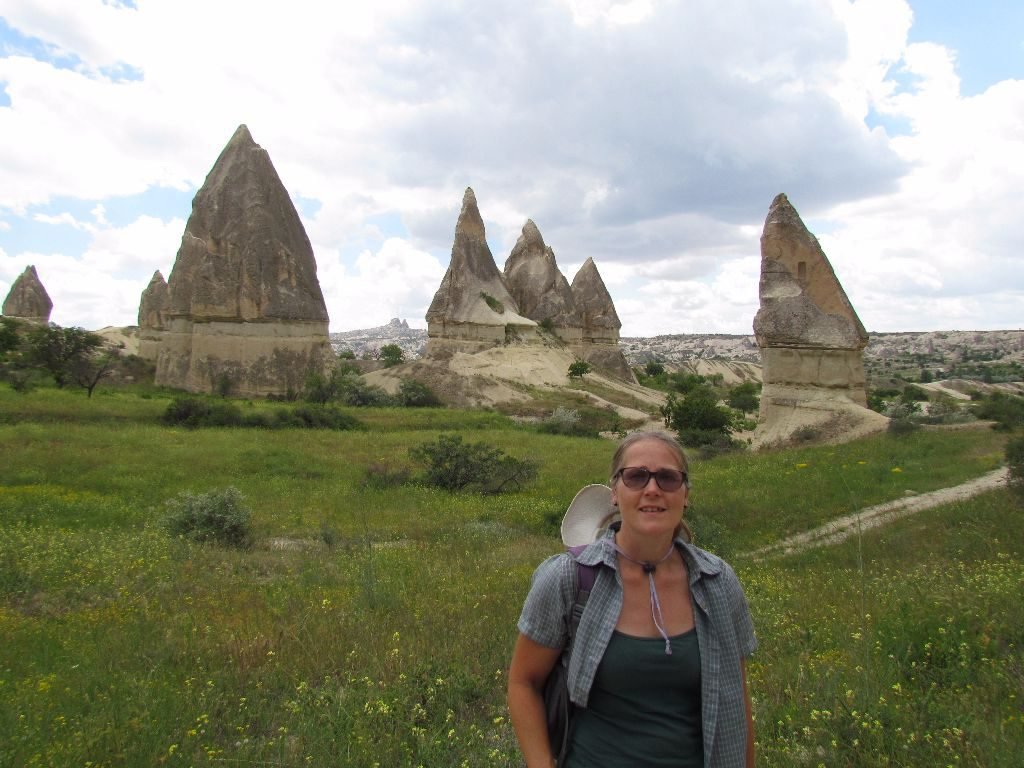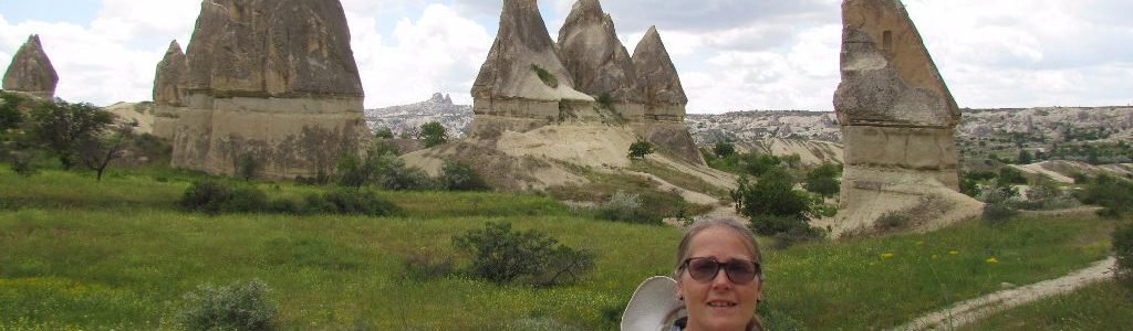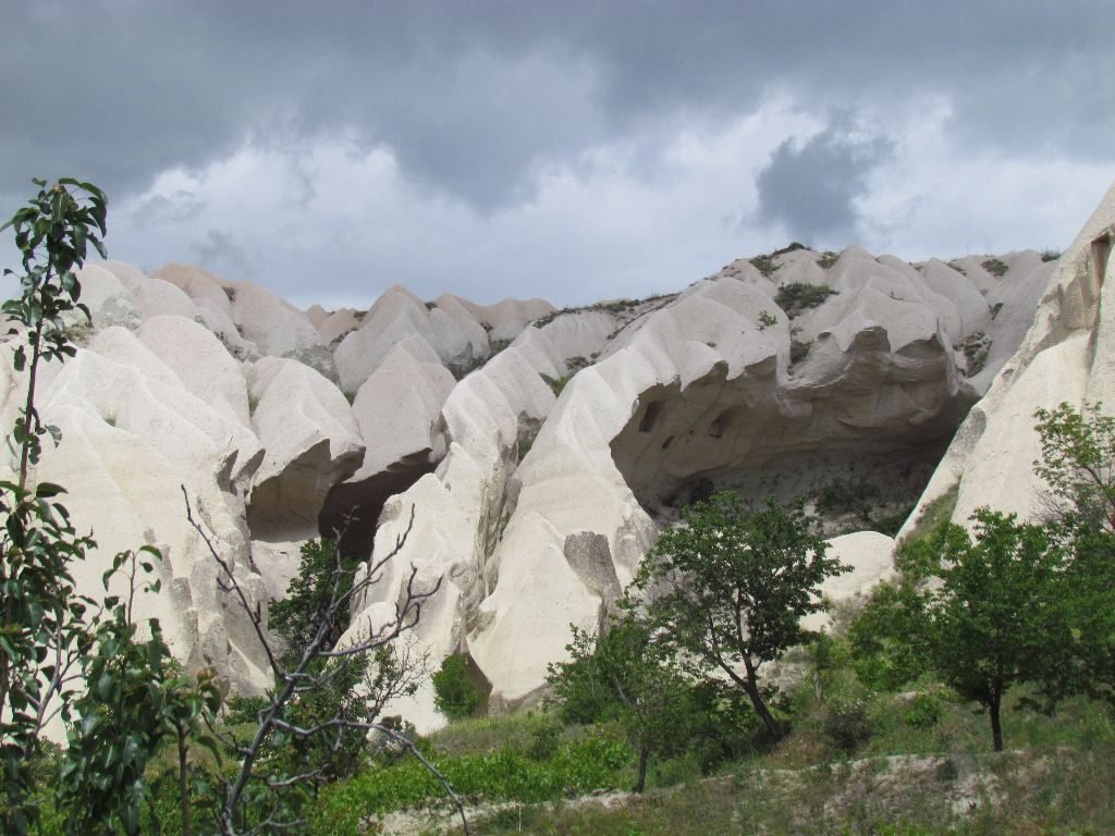 Back on the bus, our next stop was Paşabag, known for its bizarre formations. It didn’t disappoint and we spent almost an hour wandering on and off the laid pathways. What limited our time was the large, black clouds looming on the horizon. A check of a lightning strikes website showed a band of thunderstorms closing in on us. We’d wanted to take the bus to have a walk in Love Valley, but took the discretion is better than a soaking option of heading back to the safety of Göreme until the storms passed.