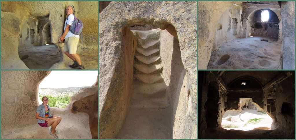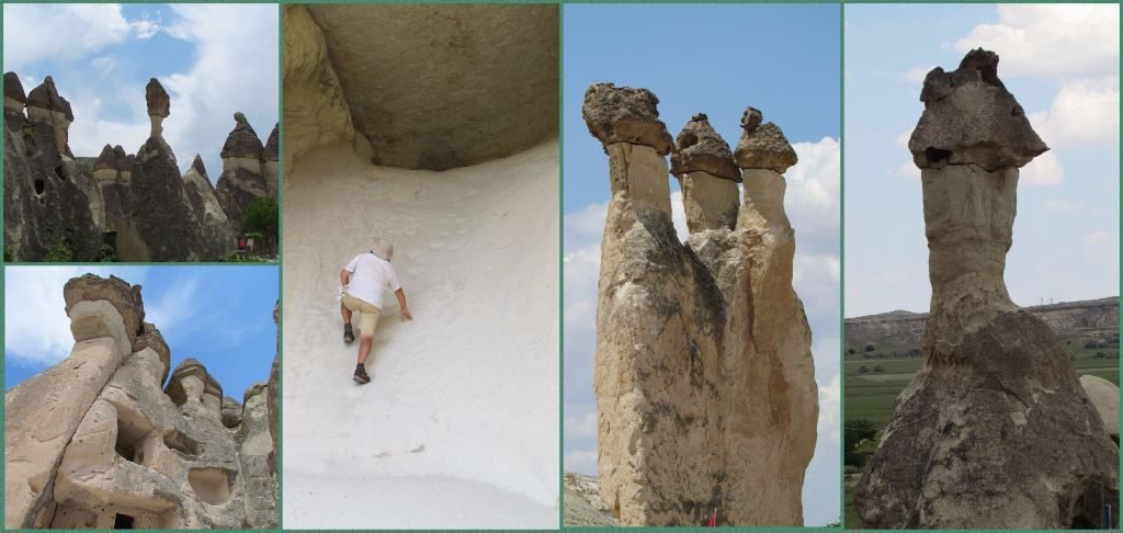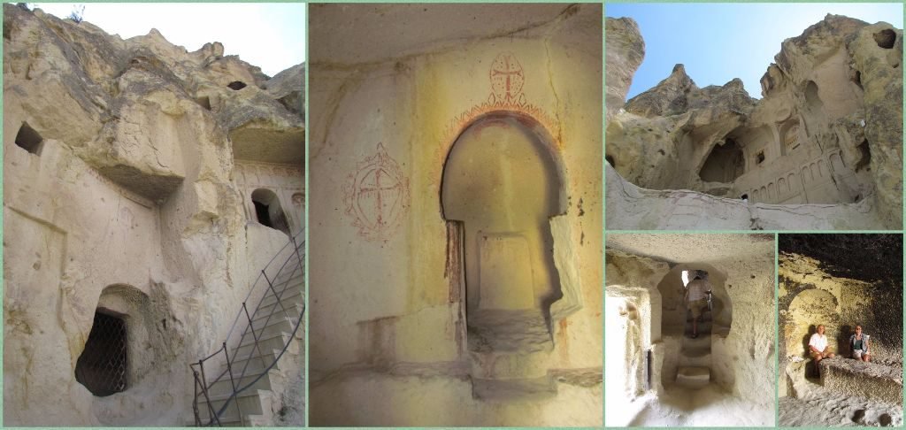 Our last main stop was at the monastery of Selime. It was carved out of the rocks way back in the 8th and 9th centuries and used by many different civilisations. After a description of the site we were left to clamber up the steep chimney sides to explore the rooms and passages.