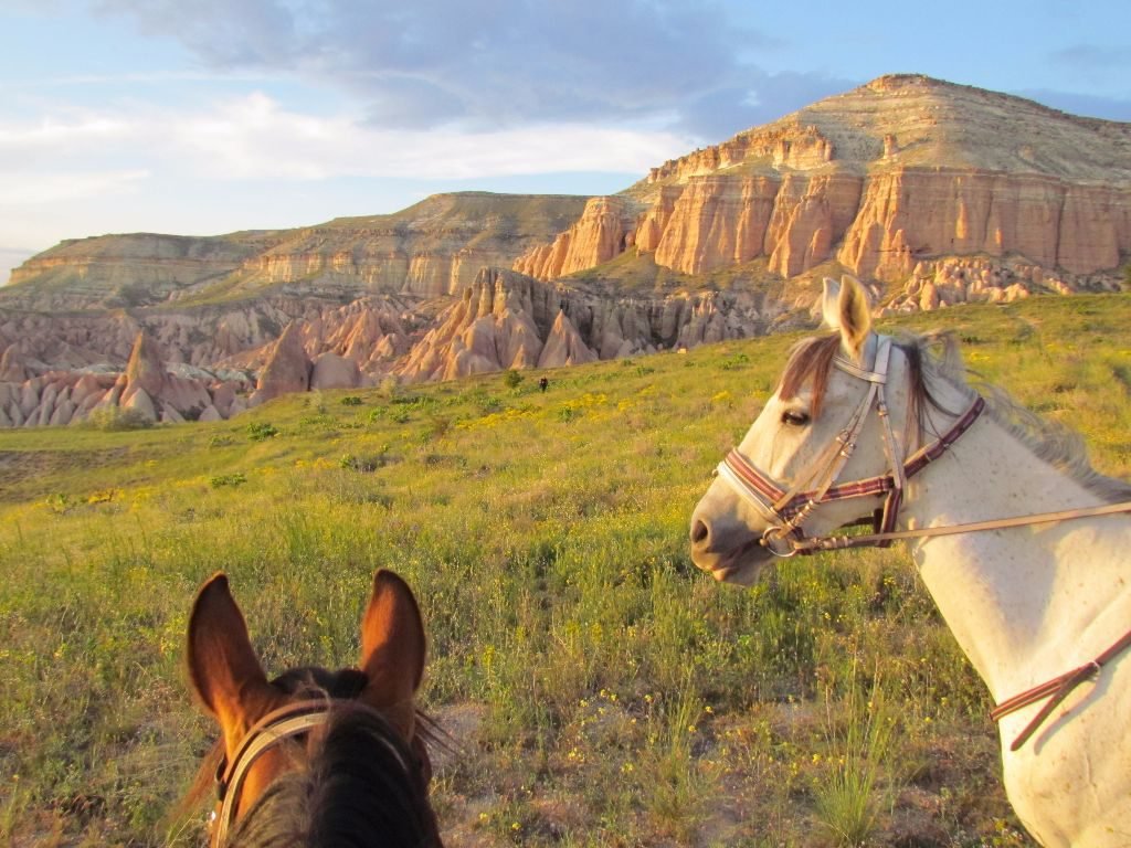 Arriving at 5:30 pm, I was surprised to be the only customer. The horses were saddled and waiting and I was glad I didn’t make a fool of myself getting on my bay horse Niffy. Luckily some muscle memory had remained from my riding lessons many years ago. Abdullah lead on his grey at a gentle walking pace, along the route we had walked a short while ago. I was a little concerned going down some of the steep tracks but soon got to trust the nimble feet of my steed. On the uphills she would get up a bit of speed to build some momentum, a bit of an unexpected surprise when it first happened!