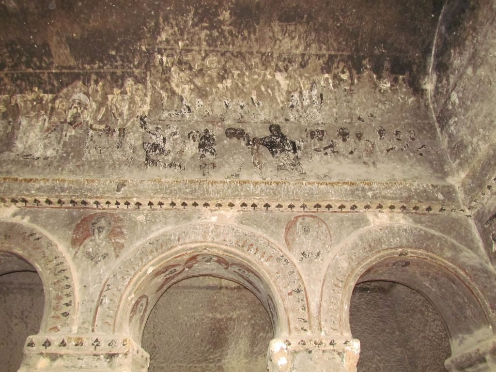 The Open Air Museum is a collection of chimneys into which churches, monasteries, and refectories were carved when Christians colonised the area in the 10th to 13th centuries. Frescoes depicting scenes from the bible covered the ceilings and walls. More surprising to us were the markings made with red ochre, which reinforced our idea that we were on an alien planet. We noticed many of the faces had lost their eyes; apparently, shepherd boys used to use the faces as target practice for throwing pebbles at.