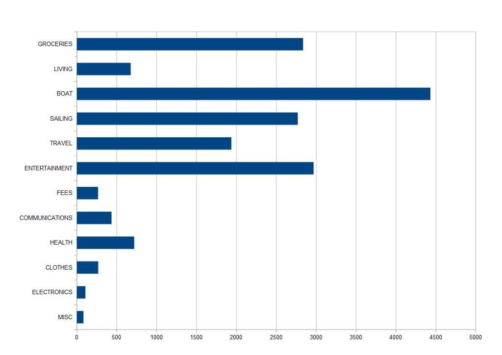 Here is a summary of 2017 in numbers! First off is the miles travelled during the summer cruise, scroll down to see how much we spent during the year.