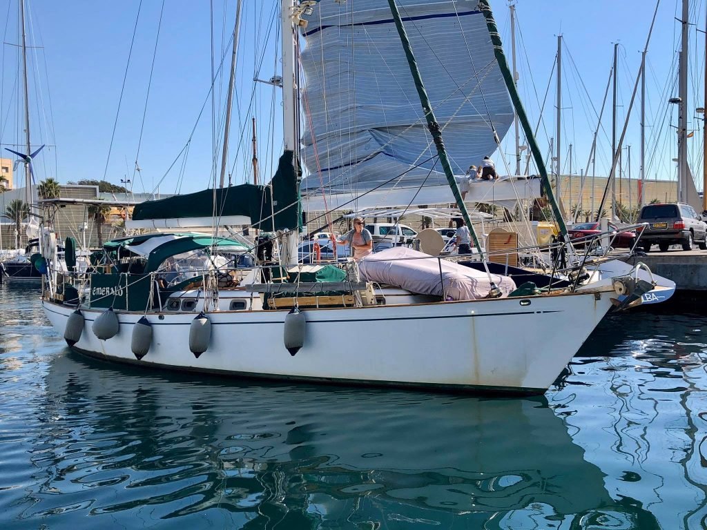 The forecast was not promising over the coming week. After a restock in Santa Ponsa, we picked the best of the bad and made another rolly passage to Ibiza. Here we met a sister boat, the first one we’ve come across in several years. A few day’s wait in Cala Xarraca allowed us to set up our downwind rig; it would have been handy on the last two passages. A hop back to Formentera, and then back across to the mainland followed. Conditions were not ideal, but with a plan to get to a boatyard in Lisbon by October, we needed to push on when we could.