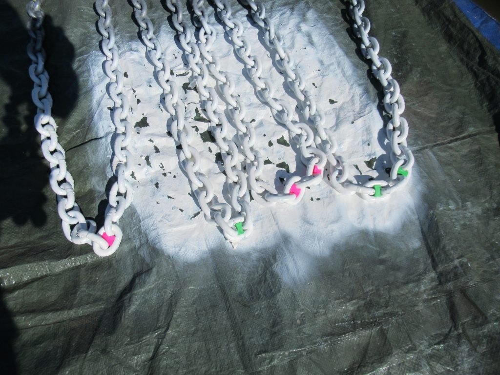 As the markers are so small, they can be difficult to see whilst the chain is feeding out. To help with this, we paint the chain white along the 10 links around each 10m mark.